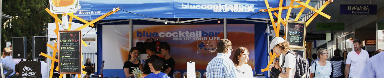 Die Blue Cocktail Bar steht für ein vielseitiges und kreatives Angebot. Mit der mobilen alkoholfreien Bar bietet das Blaue Kreuz eine massgeschneiderte Lösung für Ihren Anlass, egal ob ein Firmenapéro, ein Schulfest, ein Hochzeitsapéro oder eine Geburtstagsfeier. Die Blue Cocktail Bar kann überall in der Deutschschweiz für private und öffentliche Anlässe zusammen mit dem Barpersonal gemietet werden.